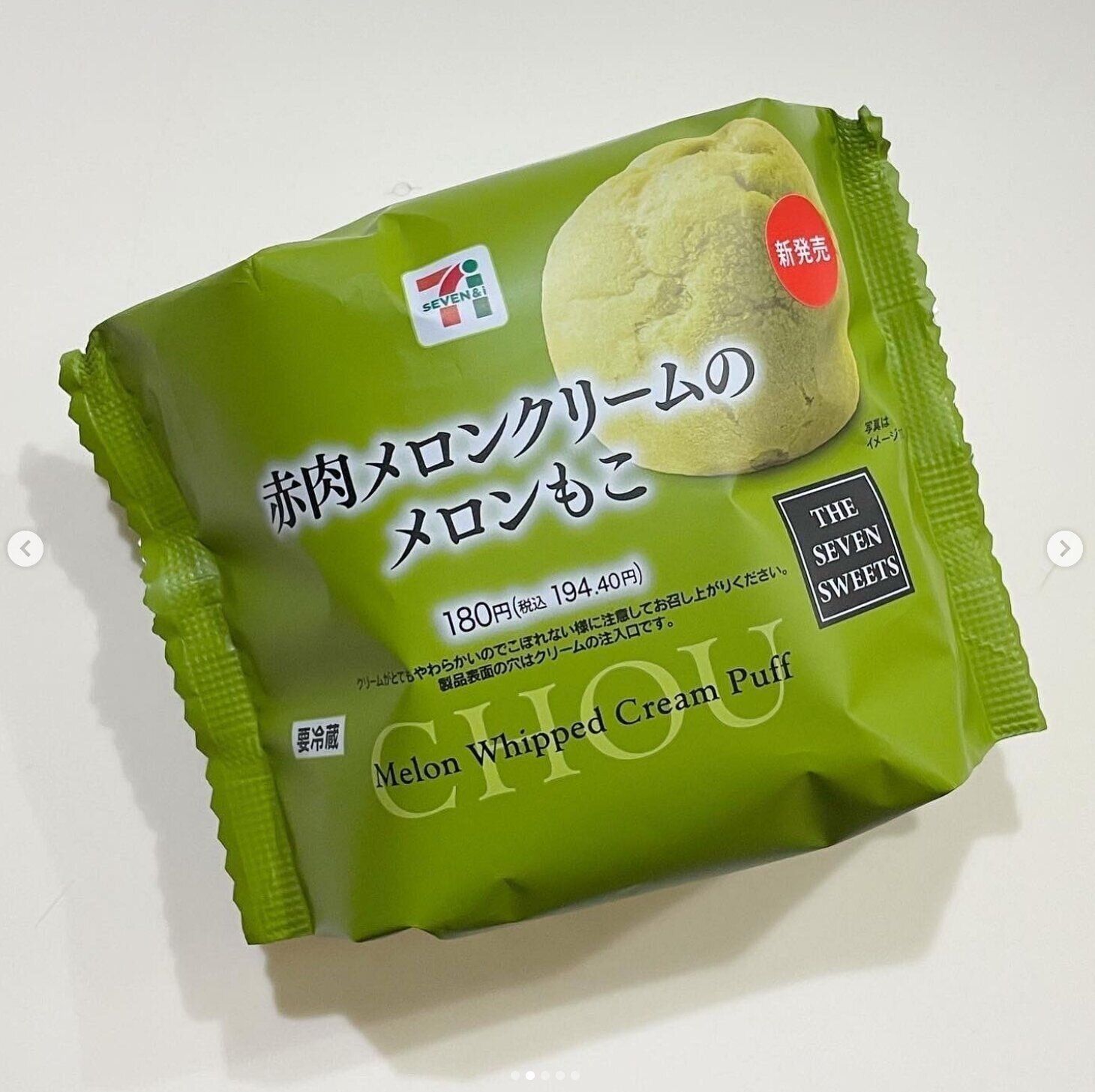 おでたまさんはセブンイレブンで「赤肉メロンクリームのメロンもこ」をセレクト!価格は194円のようで、大人気の「もこ」シリーズが好きな人はぜひチェックしておきたいですよね♪