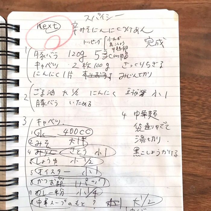 まいのおやつ キッチンで実際に作りながら、手直ししたほうがいい点をどんどんノートに書き込んでいきます。