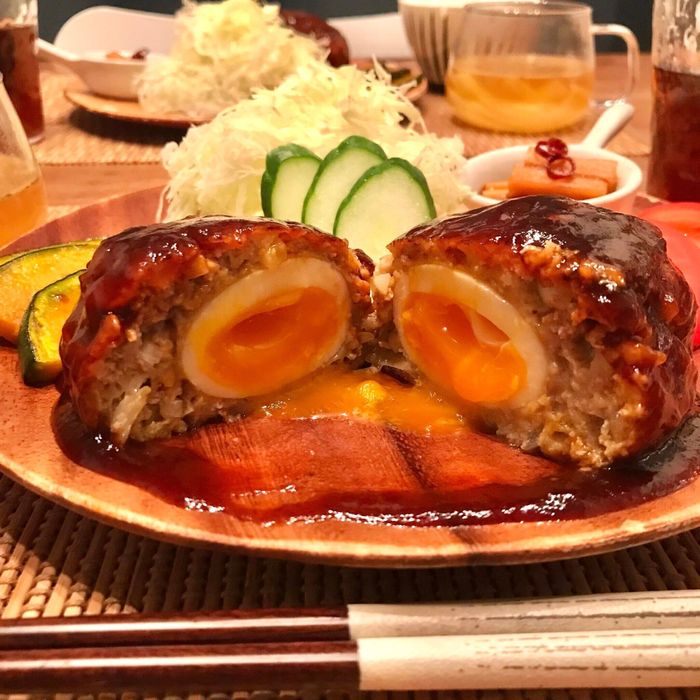【3位】半熟たまごがあふれ出す「ゆで卵とろ~りハンバーグ」