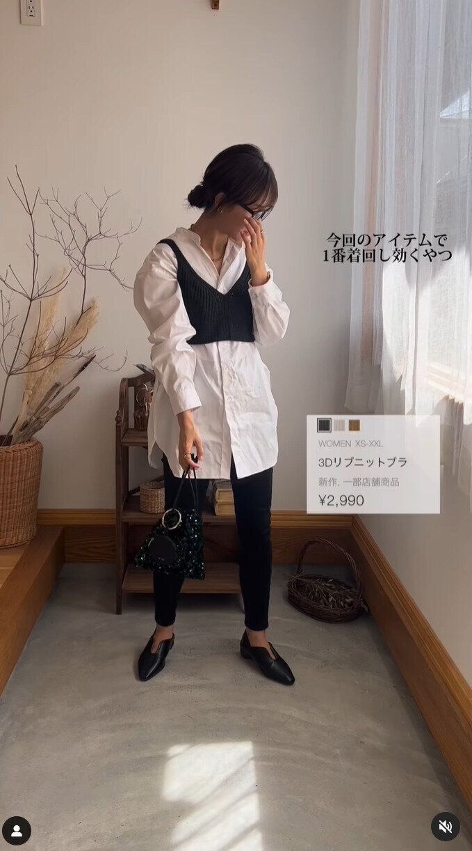 makoさんは、Mame Kurogouchiとコラボした「3Dリブニットブラ」(2,990円)を購入。ダークグレーとブラウンの2色をゲットしたようですよ。シャツと合わせたりシンプルなトップスと合わせたりと、いろんな着方ができて万能!間違いなく使えるアイテムですよね♪