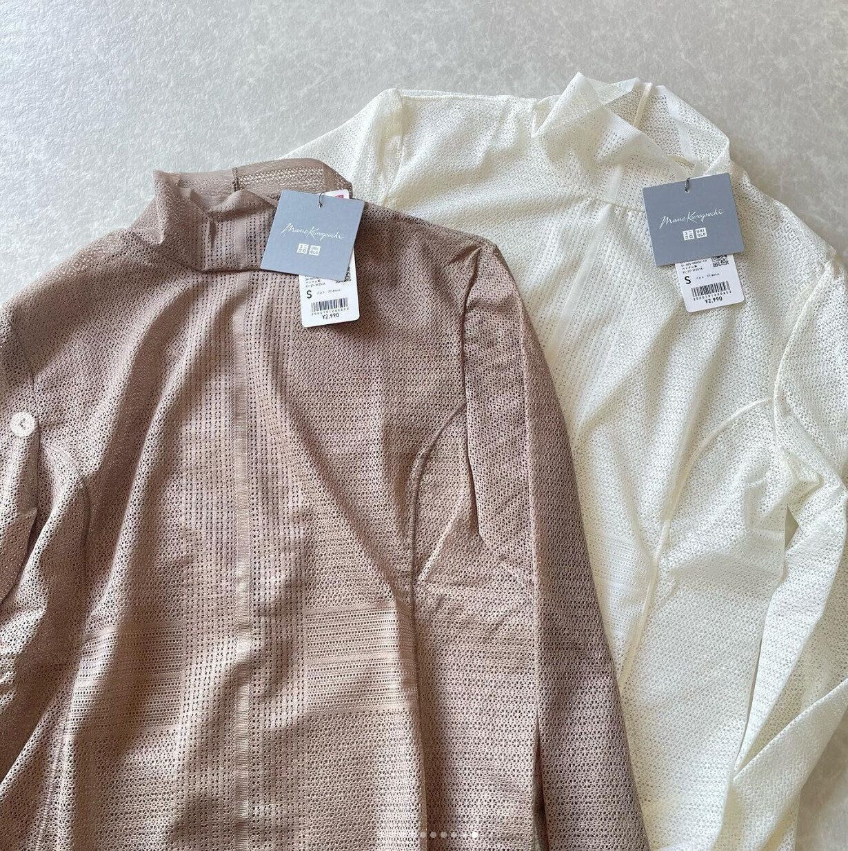 Harukiさんは、Mame Kurogouchiとコラボした「メッシュハイネックT」(各2,990円)を購入。発売前からずっと狙っていたようで、色違いでゲットしたんだとか!メッシュのデザインが繊細でオシャレですよね。透け感もあり、女性らしいシルエットも素敵♪ 色味も絶妙で可愛らしく、着回し力も抜群ですよね。
