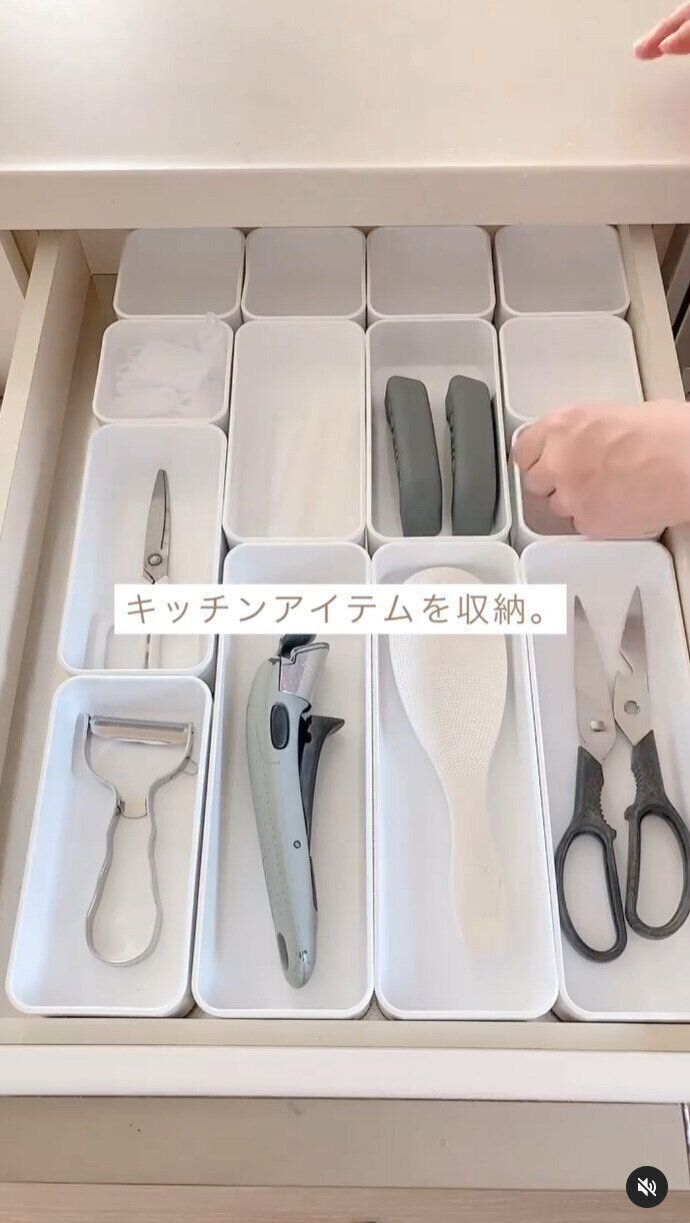 みほさんは「整理トレー Nブラン」を購入。もともと、キッチン台の引き出しには大判のトレーが一枚設置してあったようですが、使いづらかったんだとか。こちらのトレーはアイテムごとに整理ができ、汚れたらそのトレーだけ洗えば良いので、ラクになったとのこと。白なので見栄えも良いですね♪