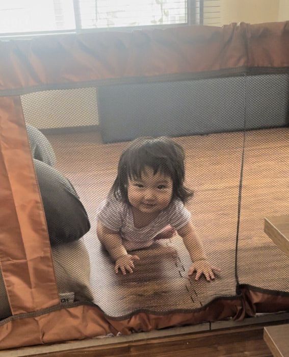 ずりばいで部屋中を動き回るようになり、棚やテレビ台にぶつかりそうになってヒヤッ。私が見ていないときにはリビングに入れないように、子ども部屋とリビングの間にベビーゲートを設置しました。