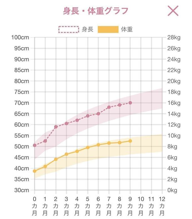 このグラフは、たまひよ公式アプリ「まいにちのたまひよ」の「きろく」機能で作成しました。
