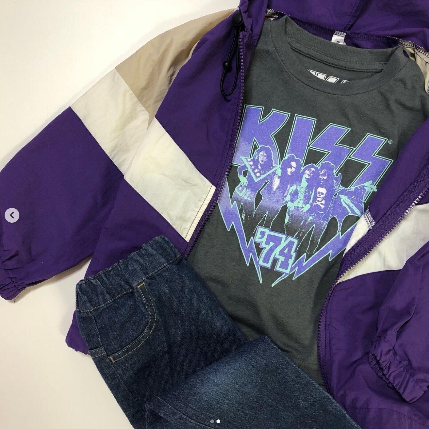 chimajiro0730さんはしまむらGETしたTシャツでコーディネート!「しまむらに、KISSのTシャツが!しかもキッズサイズ!!ビンテージでしか見たことない」とのことで、ロックTシャツのようなデザインがとてもおしゃれですよね♪