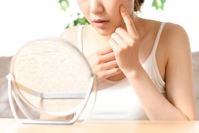 また、乾燥も肌を老化させる要因のひとつです。エアコンの使用などで空気が乾燥して肌の水分量が低下したり、強い洗浄力の食器洗剤や洗顔料で肌に必要な皮脂まで奪われたりすると、保湿機能が低下して肌が乾燥し、ツヤがなくなって、カサつきやしわの原因になります。