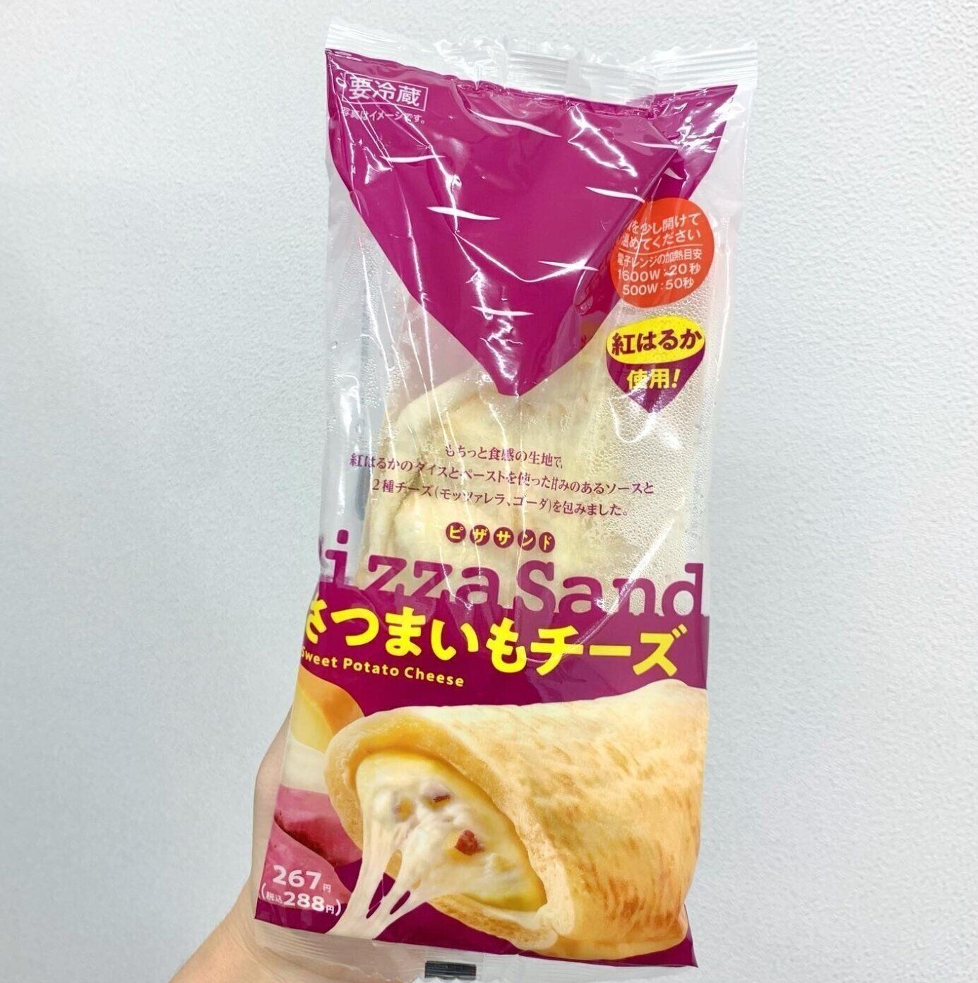 おいものお姉さん さんは、ファミリーマートで「ピザサンド さつまいもチーズ」をGET!紅はるかのダイスとペーストが入っているのでお芋の食感が感じられるんだとか!価格は288円のようです。