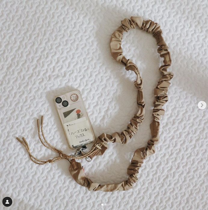 こちらはm_kaniiniさんが購入したTopologie(トポロジー)のスマホストラップ。存在感のあるフリルのようなデザインが目を引いていますよね。ベージュだと甘くなりすぎないので、どんなコーデにも合わせやすそうです◎