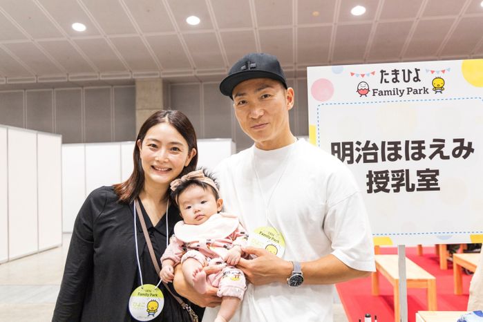 「明治ほほえみ家族授乳室」では、液体タイプの「明治ほほえみ らくらくミルク」をプレゼント。授乳室を利用した武田さんファミリーに話を聞いたところ、2カ月の麗央奈(れおな)ちゃんは液体ミルク初体験だったそうです。「お試しのつもりで少しだけあげてやめたら、もっとほしかったみたいで娘に泣かれてしまいました(笑)。初めてでしたが、いつも通りしっかり飲み、娘も気に入ったみたい。とても便利だし、お出かけのときなどに使いたいです」(武田麻奈美さん)。