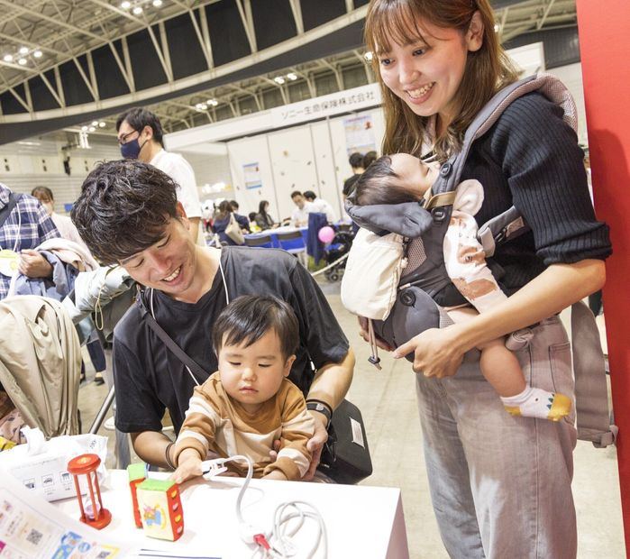 母乳を徹底的に研究してつくられた育児用ミルク「明治ほほえみ」。粉、キューブ、液体と3つのタイプがあり、ママ・パパたちも興味深く商品を手にしていました。鉄などの不足しがちな栄養をまとめてサポートできるフォローアップミルク「明治ステップ」は、鉄などの不足したいな栄養をまとめてサポートできるので、子どもの栄養不足が心配なママ・パパたちからの関心が高い様子でした。どちらもこれからもさまざまなシチュエーションで子育ての味方になってくれそうです。