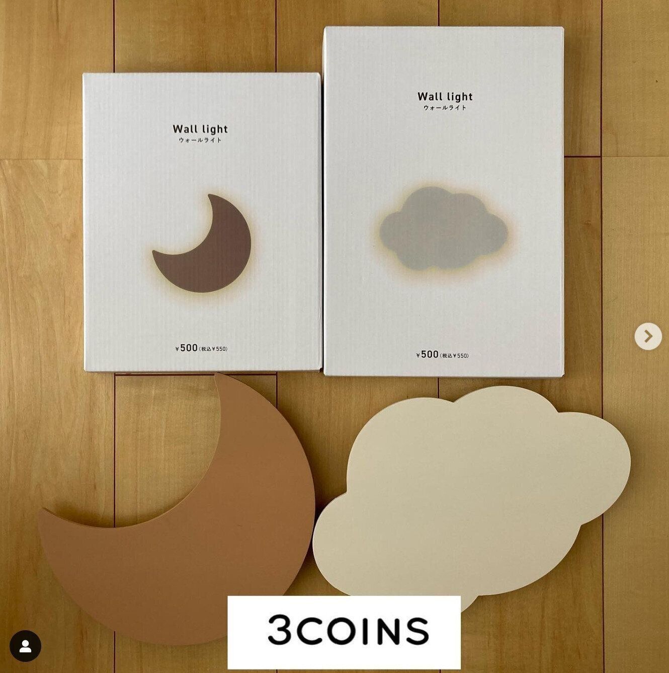 こちらはtssk.meiさんが3COINSで購入した「ウォールライト」。電池を入れると背面が光り、間接照明のようになるようです。光らせずにそのまま飾っても可愛いのだとか♪ こちらは各550円とのこと。