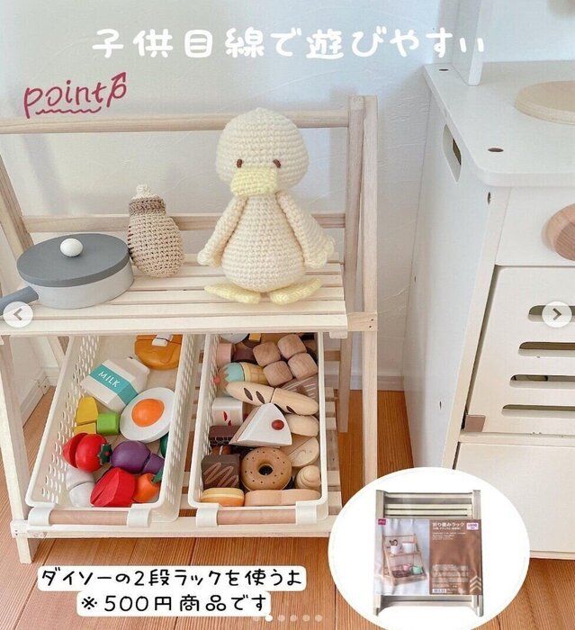 party2824さんはセリアの木製おもちゃシリーズから「季節の和菓子」をセレクト!1セットに2つずつ入っているそうで、おままごとや積み木として使えるとのこと!クッキーやケーキ、花などさまざまなものに見立てられそうですよね。お子さんの見立て・つもりの世界が広がるおもちゃですね♪