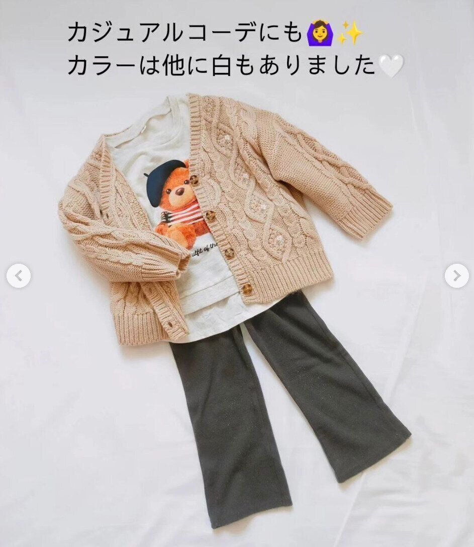 こちらはsarii.073さんが購入した、しまむらのニットロンパース。色味やデザインに一目ぼれしたんだそうです♪ こちらの投稿のように、ベージュ系のアイテムと合わせると、トレンドの淡色コーデが完成しますね!