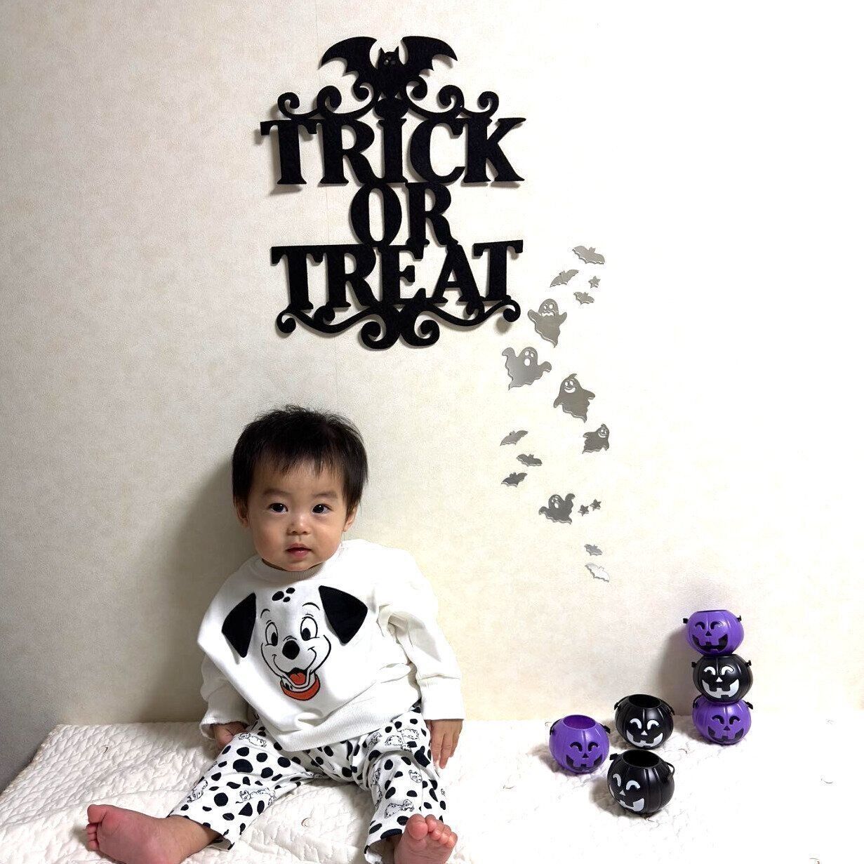 SENAさんは、101匹わんちゃんとコラボされた、スウェットプルオーバー&サマナルパンツを購入。この撮影時、お子さんは隣のカボチャがどうしても気になってしまったんだそう♪ 上下セットで着るととってもキュート!これはまとめ買い必須商品ですね。
