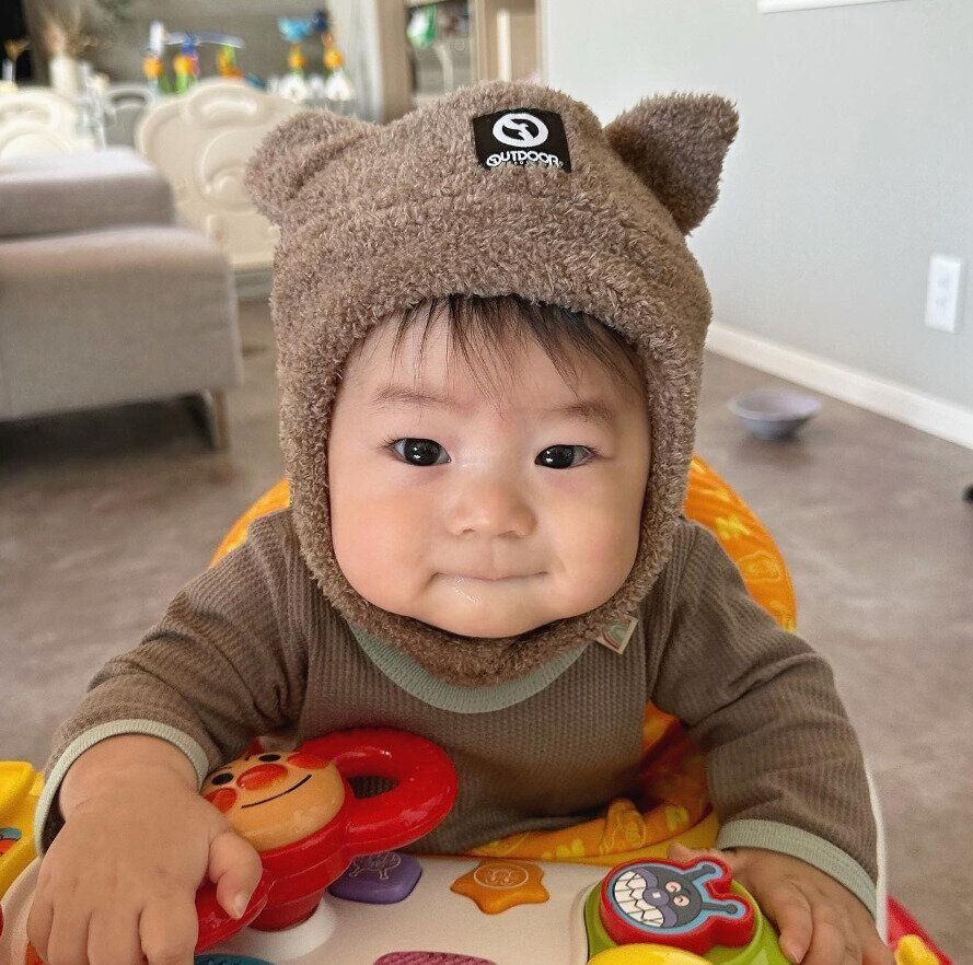 Makiさんは、バースデイにてこちらのニット帽を購入。くまさんのお耳がなんとも愛らしくてお似合いですよね♪ 頭だけでなく、首回りまでも温めてくれるので、寒い日でもポッカポカに!首元は面ファスナーで留めるタイプなので、安心してかぶせられますよね。