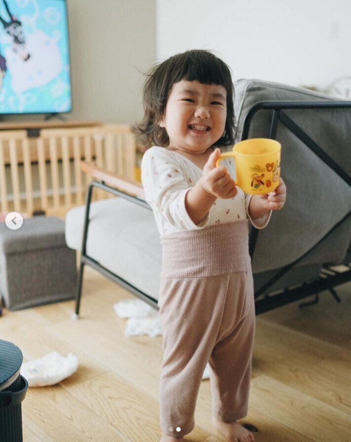 ayaka takebayashiさんは、腹巻きタイプのズボンを着せてみたようですよ。腹巻き単品だとずれてしまうことが多いですが、パンツと一体型ならずれなくて良いですよね。シャツをインしてしまえば、おなかが出ることなく、冷え対策にも♪ 上げパン姿がとってもキュートですよね。