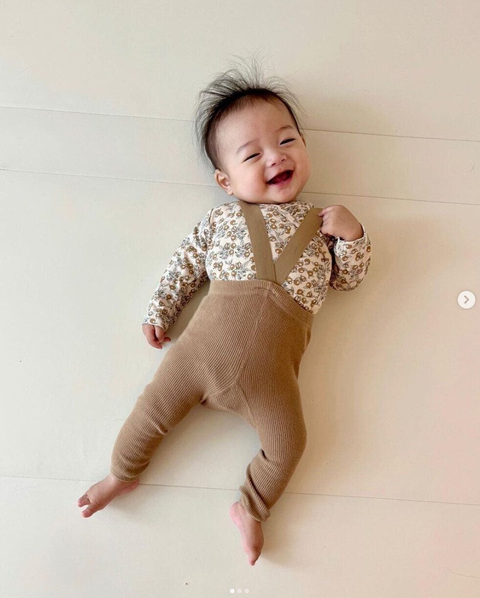 megumiさんは、ストラップ付きレギンスを着せてみたようですよ。こちらは、お子さんが1ヶ月の頃に購入したそうですが、現在はピッタリサイズになって驚いたんだとか。ストラップのおかげでレギンスがずれることなく、おなか周りもポカポカ!着ている姿も癒されますよね♪