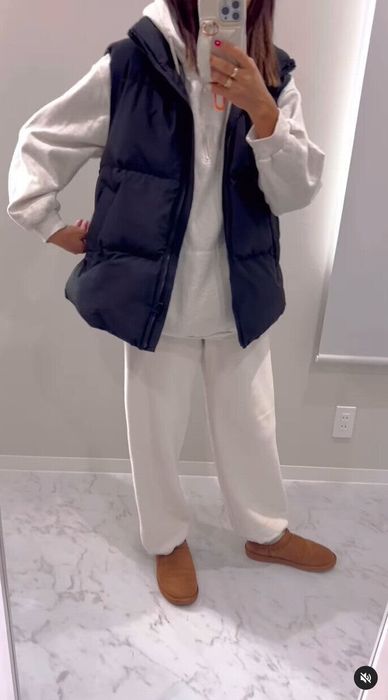 _c.7.2_さんは、ヒートパデッドオーバーサイズベストを購入。店舗でSとMを試着し、Sは割とタイトで綺麗めだったんだそう。Mは横から見たときにボリューム感があり、カジュアルな雰囲気が気に入ってこちらをチョイス!フードのあるアイテムやロンTと合わせても可愛いとのこと。軽くてあたたかそうですよね。
