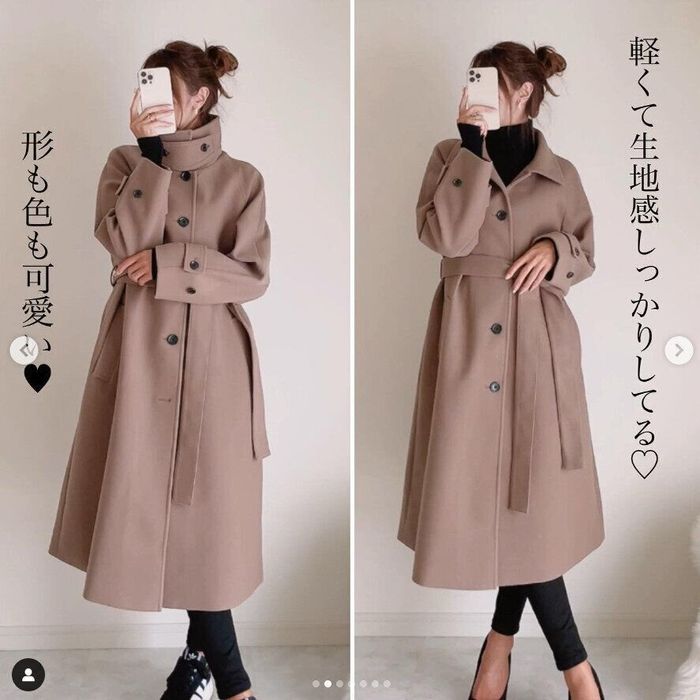 Maria.さんは「コージーメルトンバルマカーンコート」を店舗でたまたま見かけ、一目ぼれしてゲット!綺麗めやカジュアルにも使える形で、お気に入りとのこと。軽くて生地感もしっかりしているんだとか。襟を立てて羽織っても素敵ですよね♪