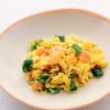 (3)(2)に溶き卵を流し入れ、混ぜながら卵によく火を通す。