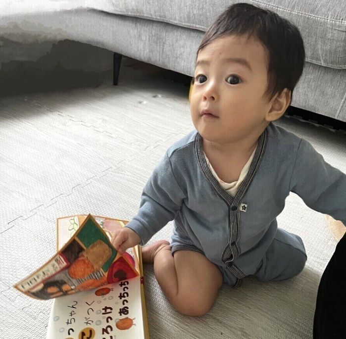 最近は絵をじ~っと見るより、ページをめくること自体にハマっている様子。息子にとっては“見て楽しむ絵本”というより“手を使って遊ぶおもちゃ”になっているのかな。