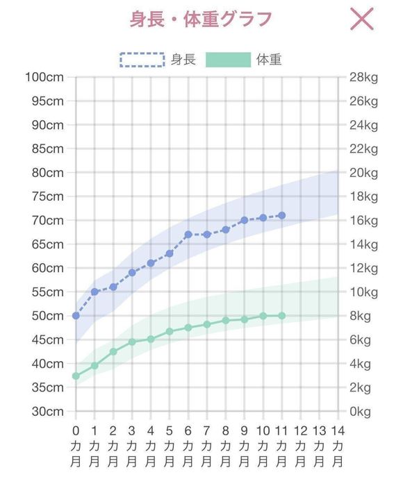 このグラフは、たまひよ公式アプリ「まいにちのたまひよ」の「きろく」機能で作成しました。