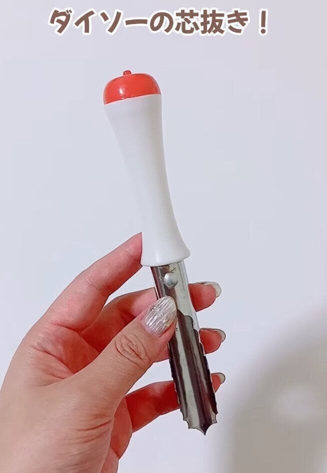 maki_.kurashiさんが愛用しているのは、「りんごの芯抜き」。このアイテムを使うと、簡単にりんごの芯を抜くことができるんだそうです!こちらのお宅では、芯を抜いてからスティック状にカットして、お子さんたちに食べさせてあげているんだとか♪