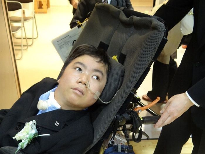 小学4年生で大脳型ALDを発症した松本智也さん(仮名)。小学6年生の終わりには車いすで生活するように。