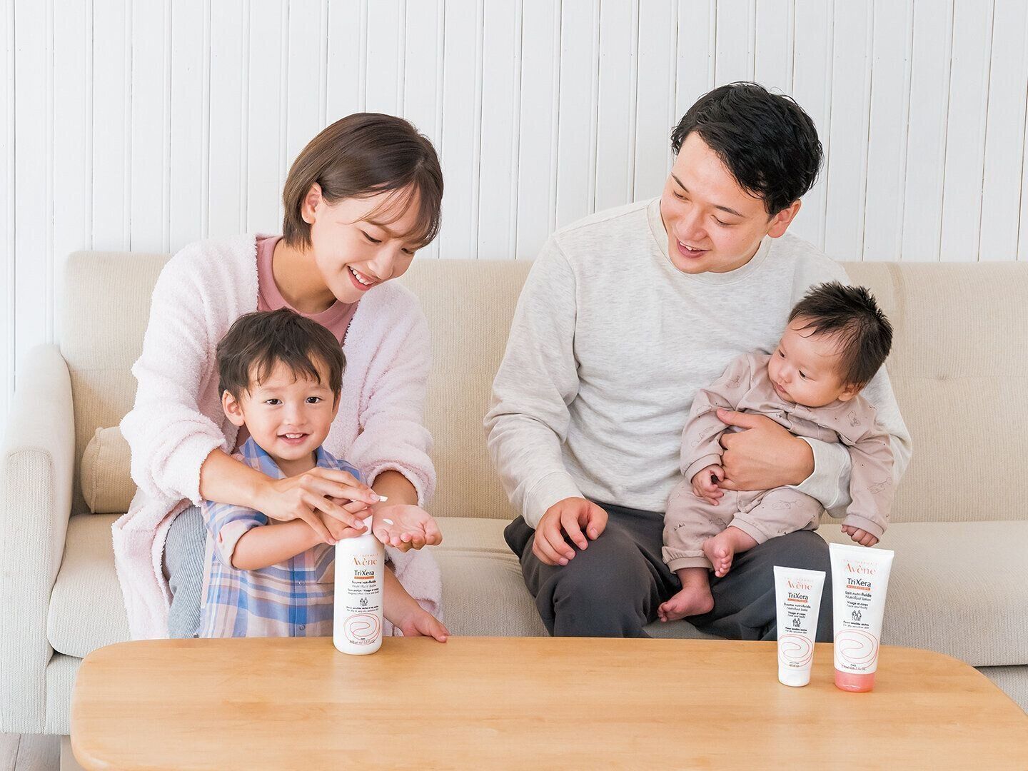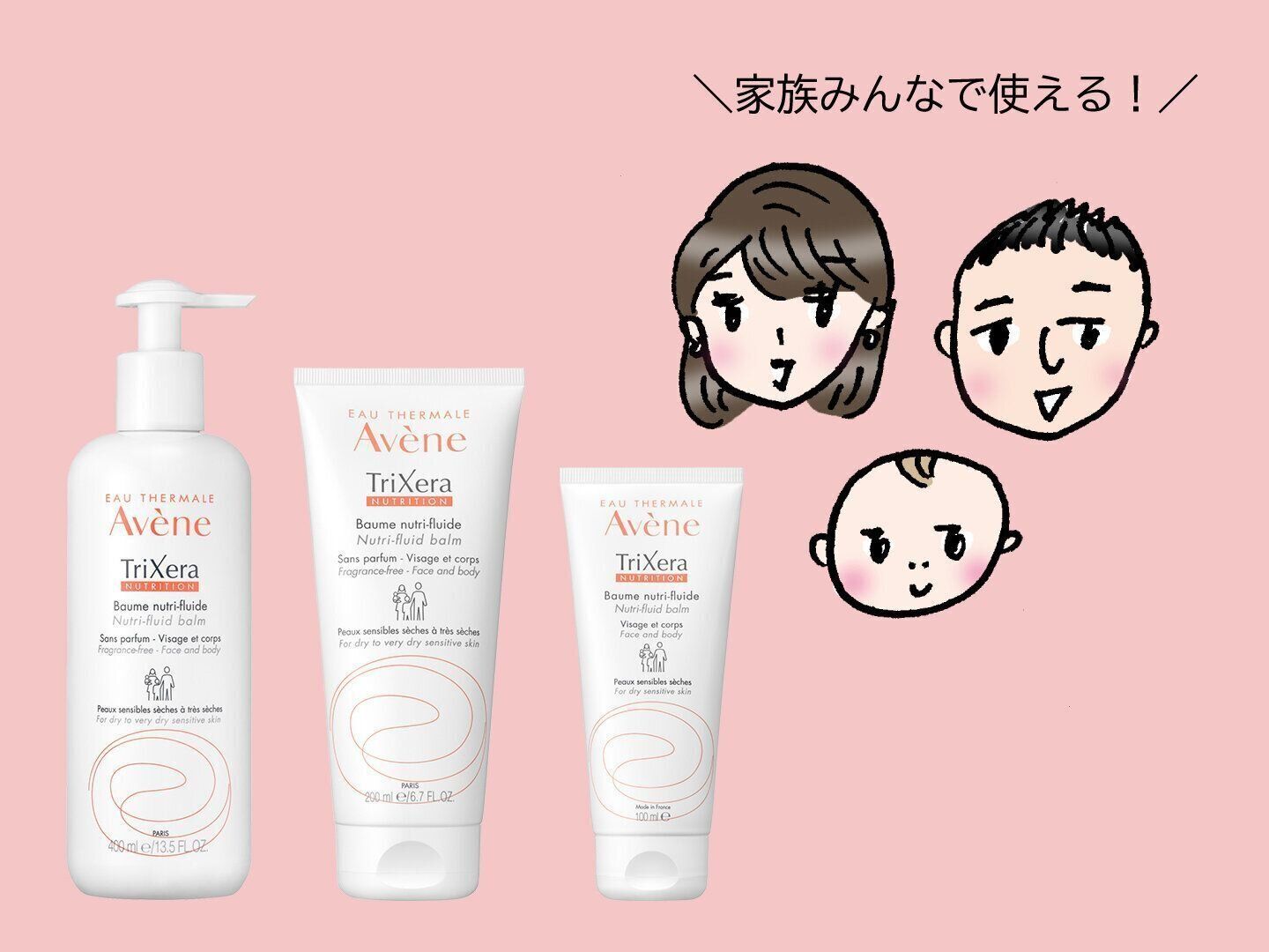 毎日赤ちゃんのお世話で忙しいママ・パパには、1アイテムで全身保湿がOK、長時間うるおいキープするアベンヌの「トリクセラシリーズ」がおすすめ! 生後1カ月の赤ちゃんから使えるのも大きなポイント。家族みんなの保湿ケア習慣に選びたいアイテムです。