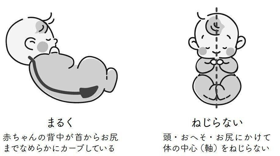 山村 首が反って頭が下に落ちないようにすることが大切です。首がしっかりすわらないうちは、背中がアルファベットのCの形になるように横抱きをしてあげましょう。片腕に赤ちゃんの頭を乗せ、反対の腕におしりを乗せます。ひざがおしりより高くなっているのが理想的です。