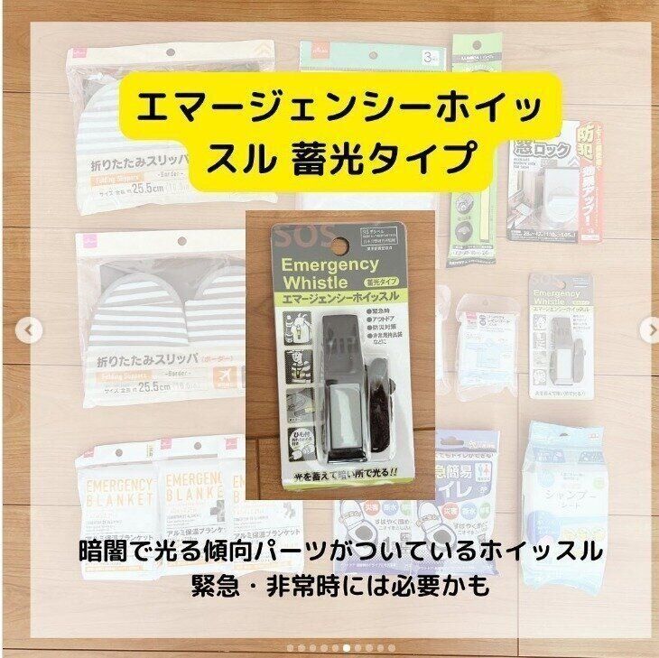 緊急時には、いつ来るかわからない助けを待ち続けるのはとても不安ですよね。egao.tytさんは、蓄光パーツ付きで暗い所で光るホイッスルを購入したそうです。音と光で居場所を知らせることができて、備えておくと安心ですね。