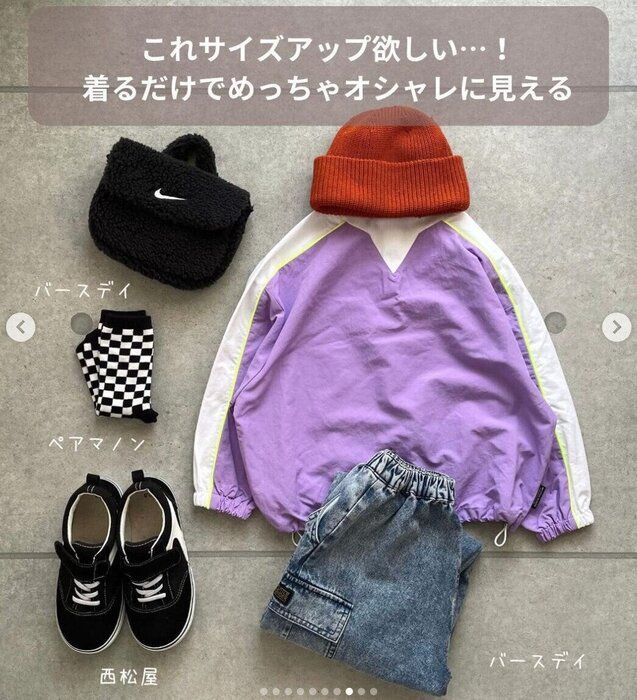 こちらは、michi_yon110さんが西松屋で発見した長袖Tシャツ。シンプルながら、胸もとのポケットデザインがワンポイントになっており、とてもおしゃれですよね!どんなアイテムとも合わせやすく、保育園着としても活躍しそう♪
