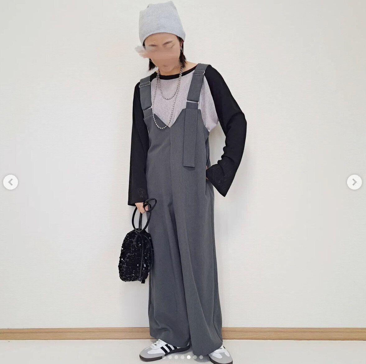 じゅじゅさんが購入した「Laumeomi..(ラウミーオミ)」のアイテムは、オールインワンと長袖のトップス。オールインワンは「一番ほしい」と思っていたそうで、アシメになっている肩ベルトのデザインや、ゆるっと太めのシルエットがお気に入りなんだとか♪ シアーラグランのトップスは、サラサラの手ざわりと、ほどよい透け感がおすすめポイントとのこと!