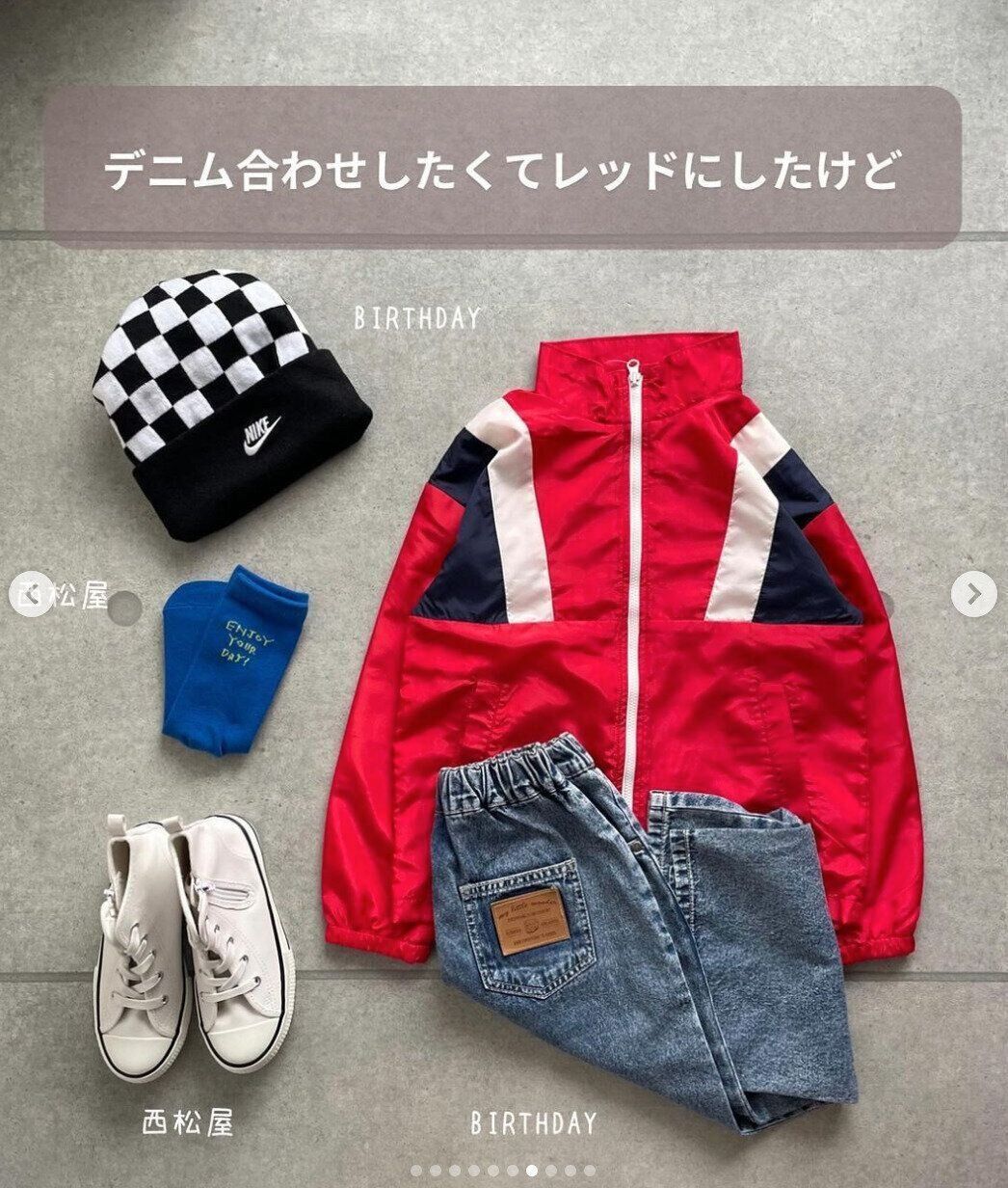こちらはriririnrinmamaさんが西松屋で購入した、薄手のジャケット。肩の切り替えデザインがオシャレで高見えしますよね!フードが付いていないので、まだ肌寒い時期の外遊びでも活躍しそう♪ 春や秋にヘビロテできそうなアイテムですが、1,307円でゲットできるようです◎