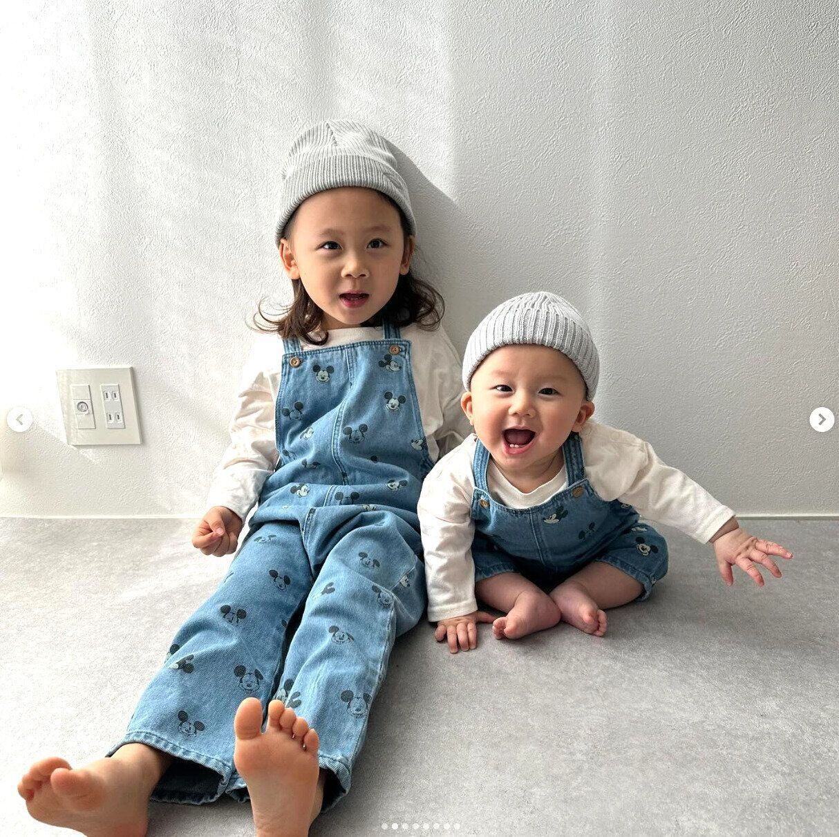 MAIさんは、ミッキーのデニムオーバーオールをH&Mで購入。ストラップの長さはボタンで調節が可能なんだとか。きょうだいでのおそろいコーデがとっても可愛らしいですよね。思わず二度見しちゃいそう♪ とってもお似合いですね!