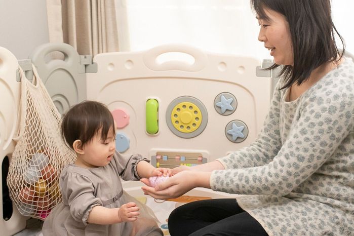 娘がおもちゃを持っているときに「ちょうだい?」と両手を出すと、渡してくれるようになりました。意思の疎通ができるようになってすごくうれしいのですが、うっかり出しっぱなしにしていた私のスマホやリモコンを手にしたときは、いくらお願いしても渡してくれません(笑)。
