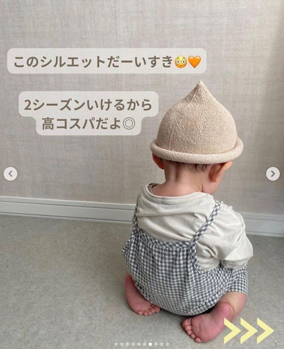 独特のフォルムがかわいい、こちらのアイテムは、西松屋のトンガリ帽子。konokono_closetさんは、トンガリ帽子のシルエットが好きで、これからの時期に使えるものを探していたんだとか♪ 春、夏と2シーズンで活躍するため、高コスパなんだそうですよ!