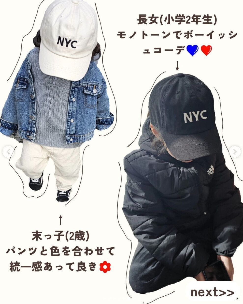 こちらのハットは、chibimon.225さんが西松屋で購入したもの。白いロゴテープとフリルが大人っぽかわいいですよね♪ 色味やデザインがシンプルなので、カジュアルコーデからキレイめコーデまで、幅広く使えそう!