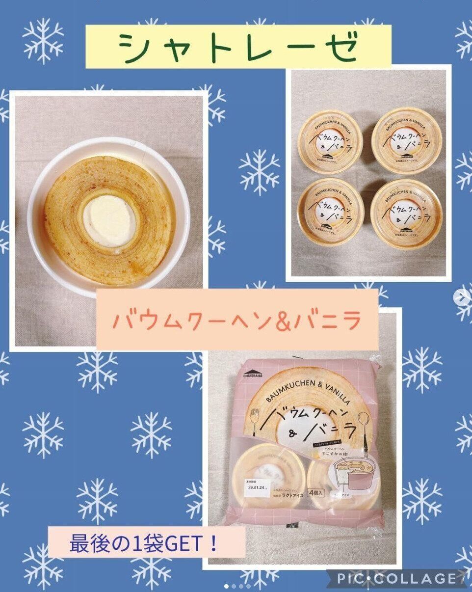 kimiko.kさんは「バウムクーヘン&バニラ」を購入。大人気商品だそうで、買いに行った店舗では残り1袋だったんだとか。バニラアイスの上にバウムクーヘンがそのまま乗っており、贅沢感満載とのこと♪ テンションの上がるアイスですよね!