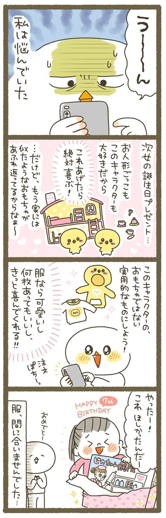 おもちゃを増やしたくないからと洋服にしたのに、誕生日までに届かず。