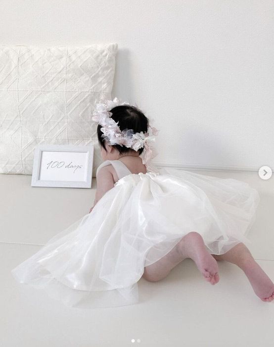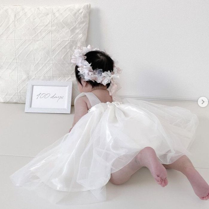 こちらはaikyun_uta_kyunさんが購入した、3COINSのチュールドレス。生後100日の記念フォトに使ったんだそう♪ ふわっと広がったシルエットが、とてもかわいいですよね!着せるだけで映えるおうちフォトが撮れそうなので、 ぜひゲットしておきたいところ。