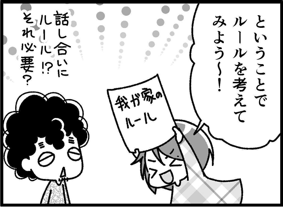 もしかしたら「話し合い=嫌なもの」ではないのでは、嫌だと思わないための工夫をしたらいい……そう思って我が家の話し合いのルールを作ってみることにしました。
