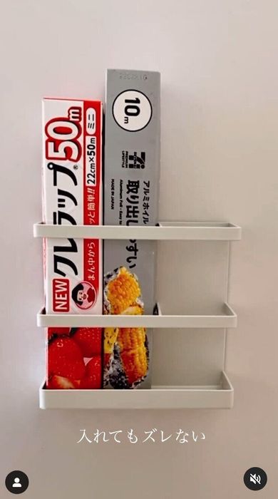 こちらはpiico_life_さんがずっと欲しかったという3COINSの「マグネットラップホルダー」。以前使っていたものよりスタイリッシュで、マグネットがしっかりくっついてズレにくいのだとか。キッチン周りが整って快適になったとクオリティの高さに満足しているようです♪ こちらは1,100円商品とのこと。