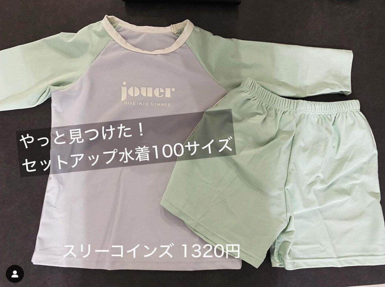 こちらはmookohanskyさんがやっと見つけたという3COINSのセットアップ水着(100サイズ)。オンラインショップの在庫がなく諦めかけていたときに、店舗で残り1点だったところをたまたま発見したんだとか。1,320円商品のようですが、迷わず購入したとのこと♪