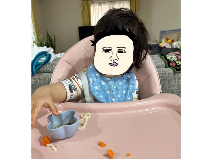 それでもできるだけ「ちゃんと食べようね」と言うように気をつけてはいました。でも先日、あまりにもイライラして、机を「バンッ!」とたたき「なんでそういうことするの!」と怒ってしまったんです。そしたら娘は私の顔を見て「うわーん!」て泣いちゃって。こんなふうに大人の都合で怒ったらダメなんだろうなと反省しました。とはいえ、やっぱり心の余裕や時間がない中で離乳食をあげているときには、娘がちっとも食べなかったり、食べ物を床に投げたりすると、めっちゃストレスがたまります。