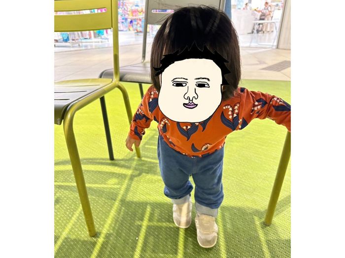 お出かけ先で、テーブルの下から「ばぁ〜!」