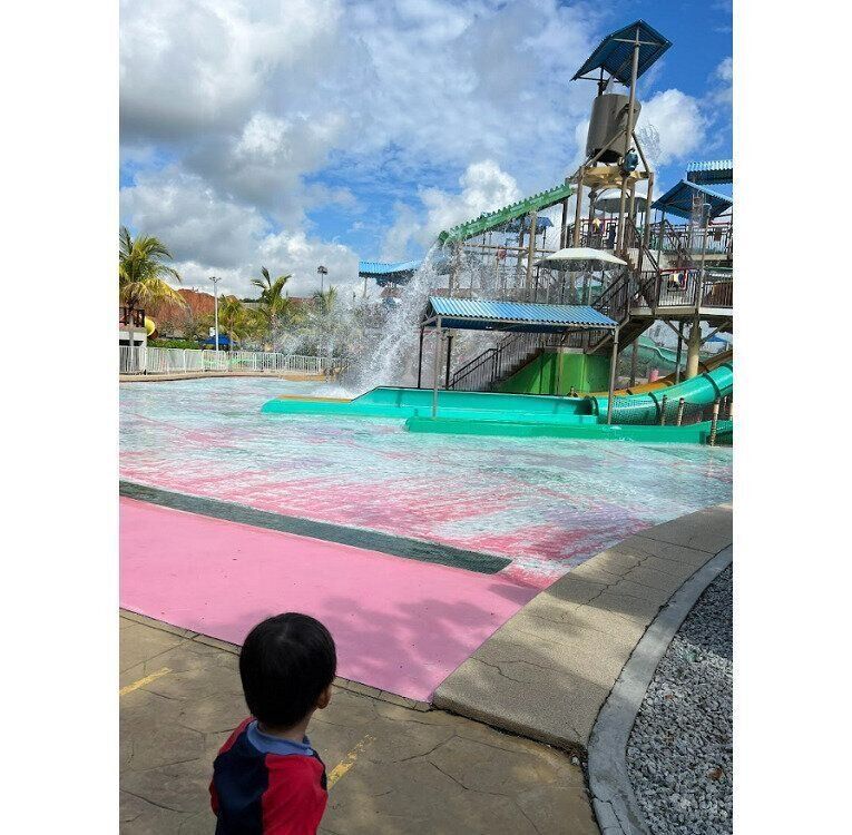到着してすぐウォーターパークに行けるように家から水着着用で出かけましたが、そのときにちょっとしたハプニングが起きたんです。