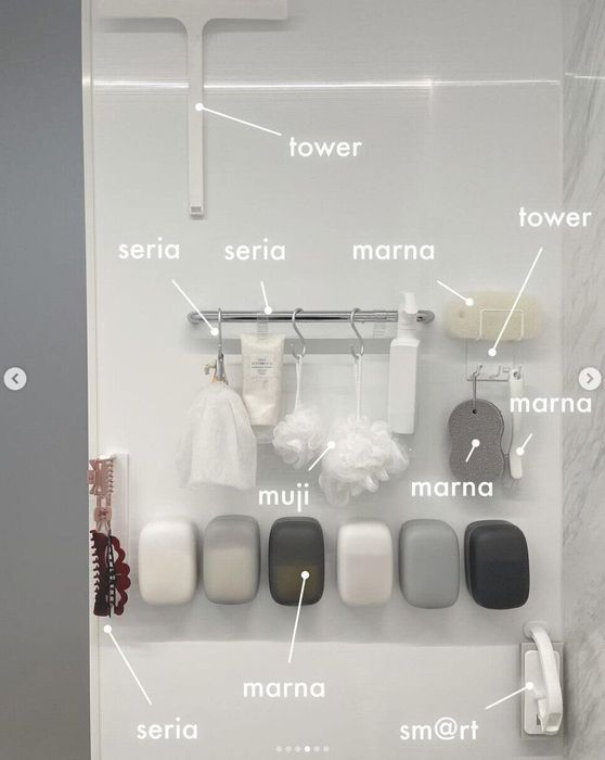 RIHOさんは、セリア・tower(タワー)・marna(マーナ)などの商品を使ってお風呂の収納をスッキリと♪ シャンプーやスポンジ、お掃除グッズなど、お風呂で使うものをほぼ吊るしており、今のところカビしらずなんだとか!まさにこれからの時期に大活躍するアイテムですね。