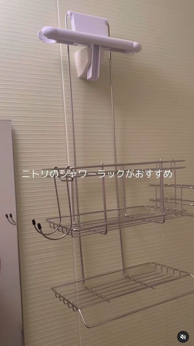 なぎさんは、ニトリの「ステンレスシャワーラック2段」を購入。こちらはシャワーホルダーに取り付けるだけなんだそう。ボトルなどを浴槽サイドに置くと、落としてしまったりヌメリがついたりと困ることばかりですが、ラックがあればスッキリと収納!オールステンレスで錆びにくいのも良いですね♪