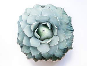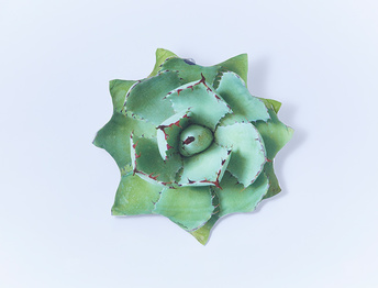 実はこの「アガベ 吉祥天」だけ鎌田さんの手元の植物ではなく、なんとアリゾナまで(?!)撮影に赴いたというこだわりの一品。少し粉を吹いたスモーキーなグリーンが味わい深く、重厚感のある多肉植物です。